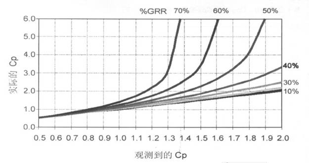 3. 测量系统的变差如何影响数据,这种影响程度可以量化吗?为什么要求%GRR≤10%?如何理解下图展示的“实际的Cp”和“观察到的Cp”之间关系?